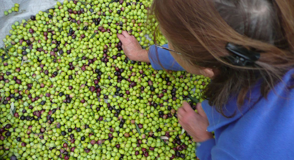 Uta Krämer sucht die besten Oliven heraus, zum Einlegen