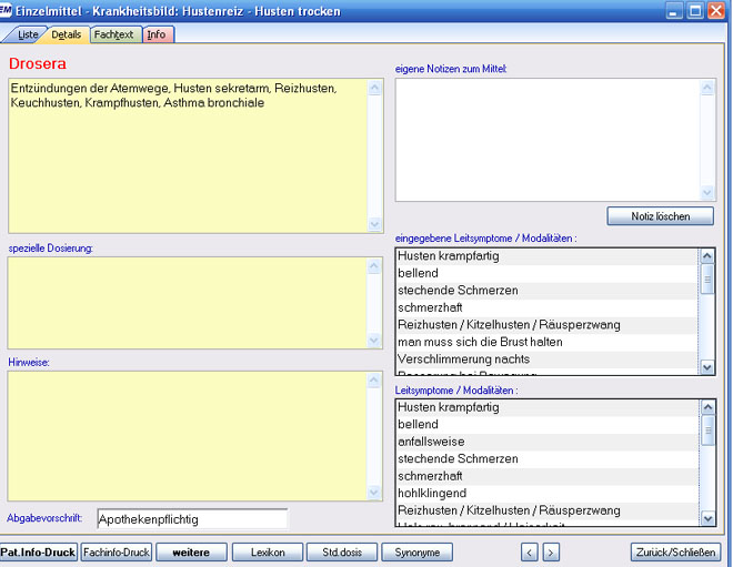 zuvor eingegebenen Leitsymptomen und